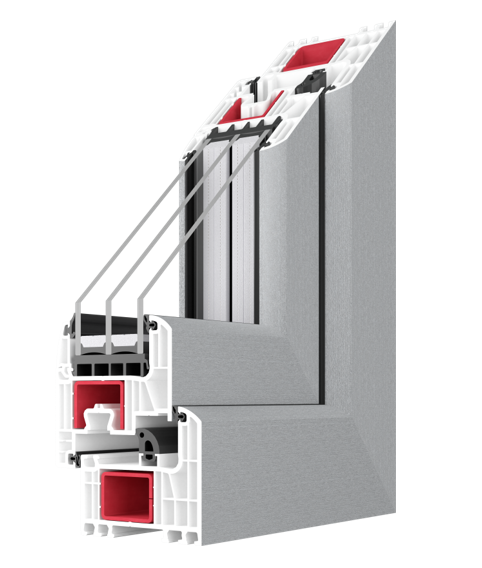 Diseño único con una selección de perfiles de acristalamiento angulares para adaptarse a las últimas tendencias arquitectónicas. El diseño óptimo del perfil de 7 cámaras, un sistema de sellado de espuma EPDM especialmente diseñado y paquetes de acristalamiento con altos parámetros de aislamiento térmico son los responsables de los excelentes parámetros de aislamiento térmico. Como estandár: